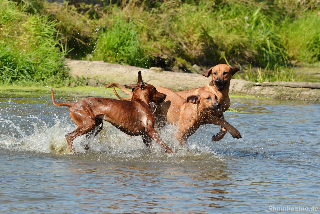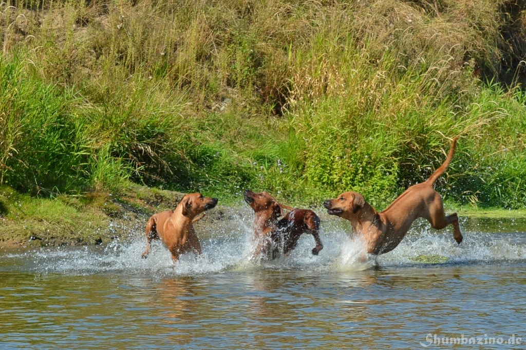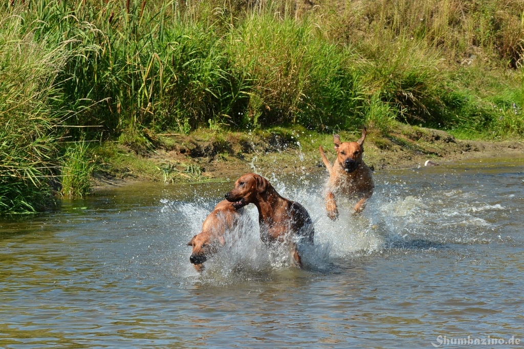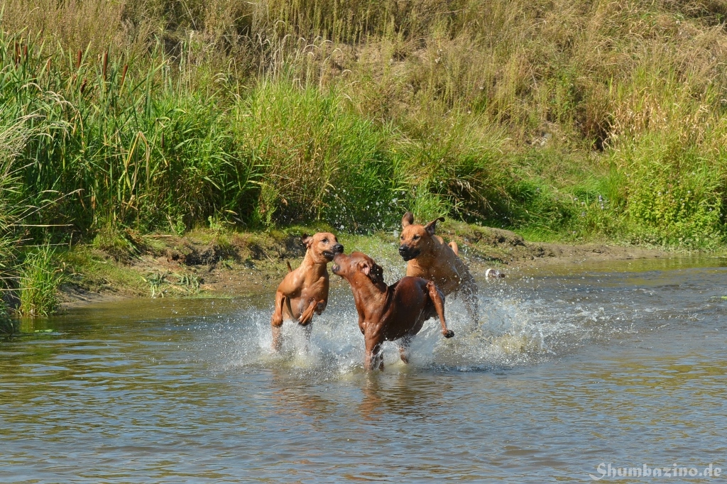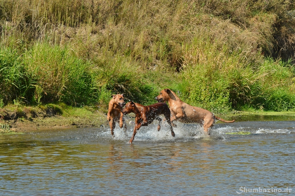 Malou gab den beiden Halbgeschwistern eine Schwimmstunde in der Werse, zeigte ihnen wie gut diese Abkühlung tut und wie ausgelassen man durchs Wasser toben kann. Unserer kleiner Clown mischte, wie üblich, fleißig mit ???? Es war großartig den 3en zuzusehen.