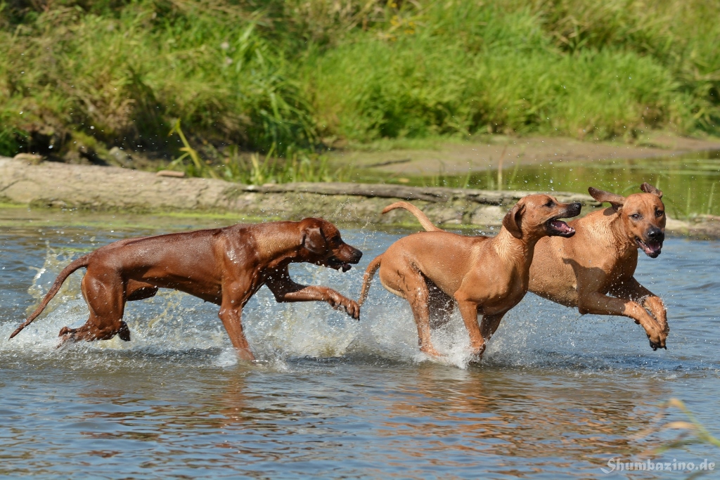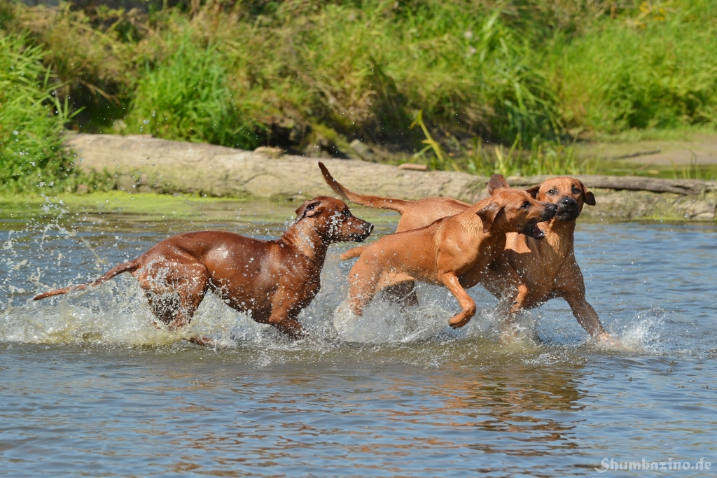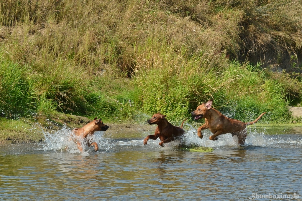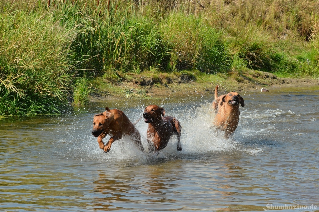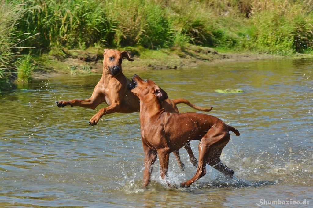 Malou gab den beiden Halbgeschwistern eine Schwimmstunde in der Werse, zeigte ihnen wie gut diese Abkühlung tut und wie ausgelassen man durchs Wasser toben kann. Unserer kleiner Clown mischte, wie üblich, fleißig mit ???? Es war großartig den 3en zuzusehen.