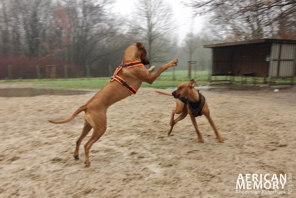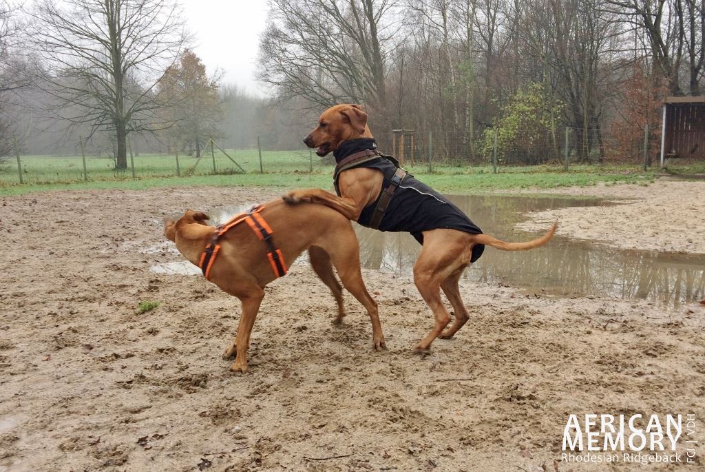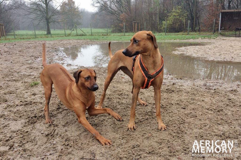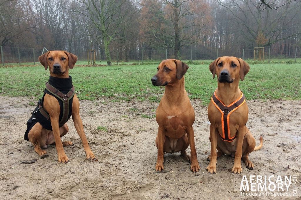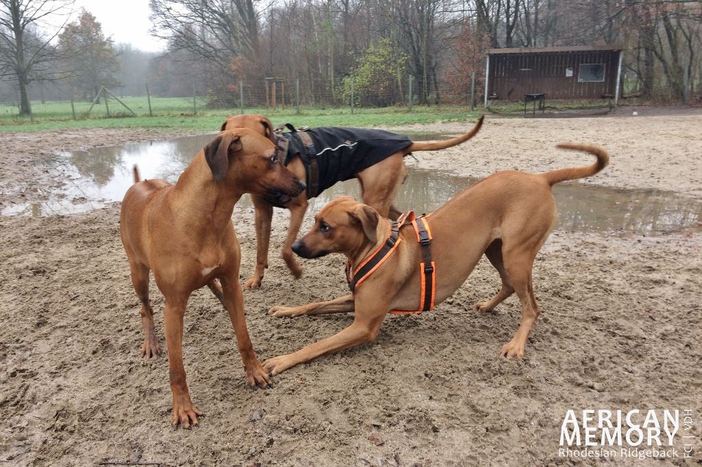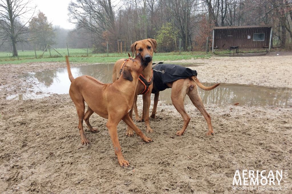 Ziemlich spontan trafen wir uns in Kamen zum Trailen. Am Start waren Eya (Shumbazino Freya, 2,5 Jahre), Lubaya (Bongani’s Chacha Lubaya, 4 Jahre) und Malou (knapp 2 Jahre alt). Die 3 RR-Mädels machten einen super Job und ließen sich vom schlechten Wetter nicht beeindrucken. Zur Belohnung durften sie anschließend nach Herzenslust im Schlamm toben – welch eine Freude! Problemlos arrangierten sich die jungen Damen miteinander und dass trotz Hormonchaos mit Standhitze (Eya) und Scheinträchtigkeit (Malou). Schmutzig, aber glücklich traten wir die Heimreise an…