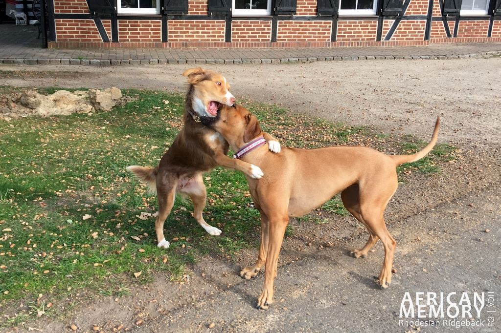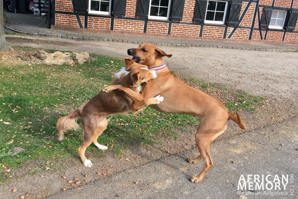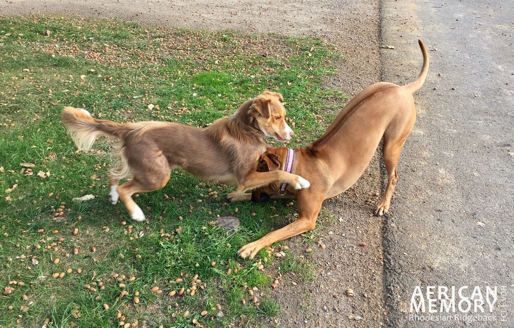 Heute trafen wir auf unserer heimischen Hunderunde eine süße Aussi Hündin gleichen Alters. Die beiden Mädels verstanden sich auf Anhieb und ließen ihrer Freude freien (Aus-)Lauf. Malou war mit sich und der Welt bestens zufrieden.