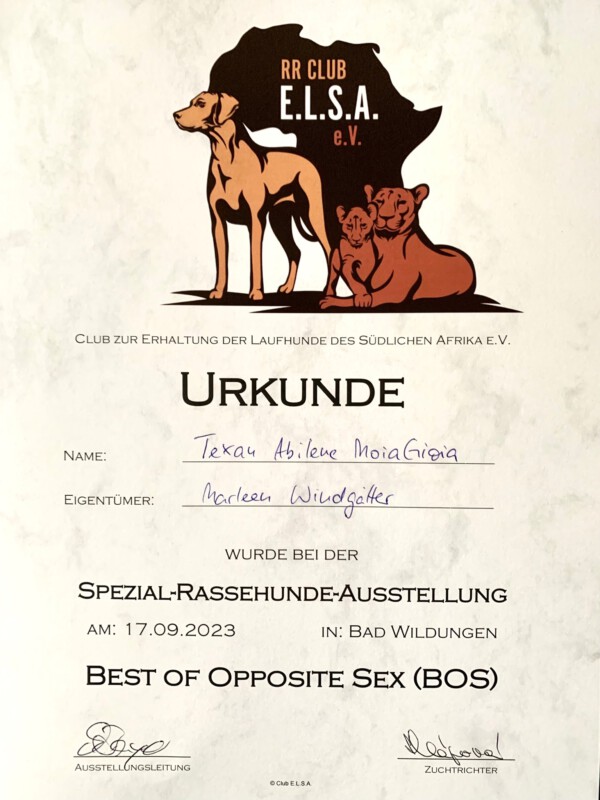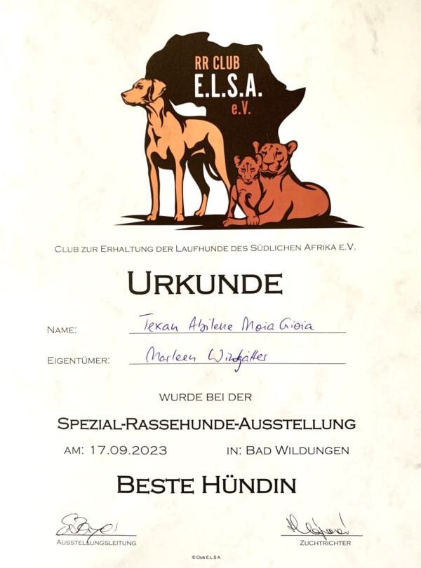 17.09.23, Jugendklasse, Richterin Milada Krchnava (SK): V1 /12, Anw. Dt. Jug. Ch. VDH + Beste Hündin + BOS !!!